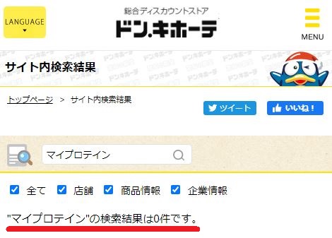 マイプロテインはドンキホーテのホームページにも置いていませんでした。